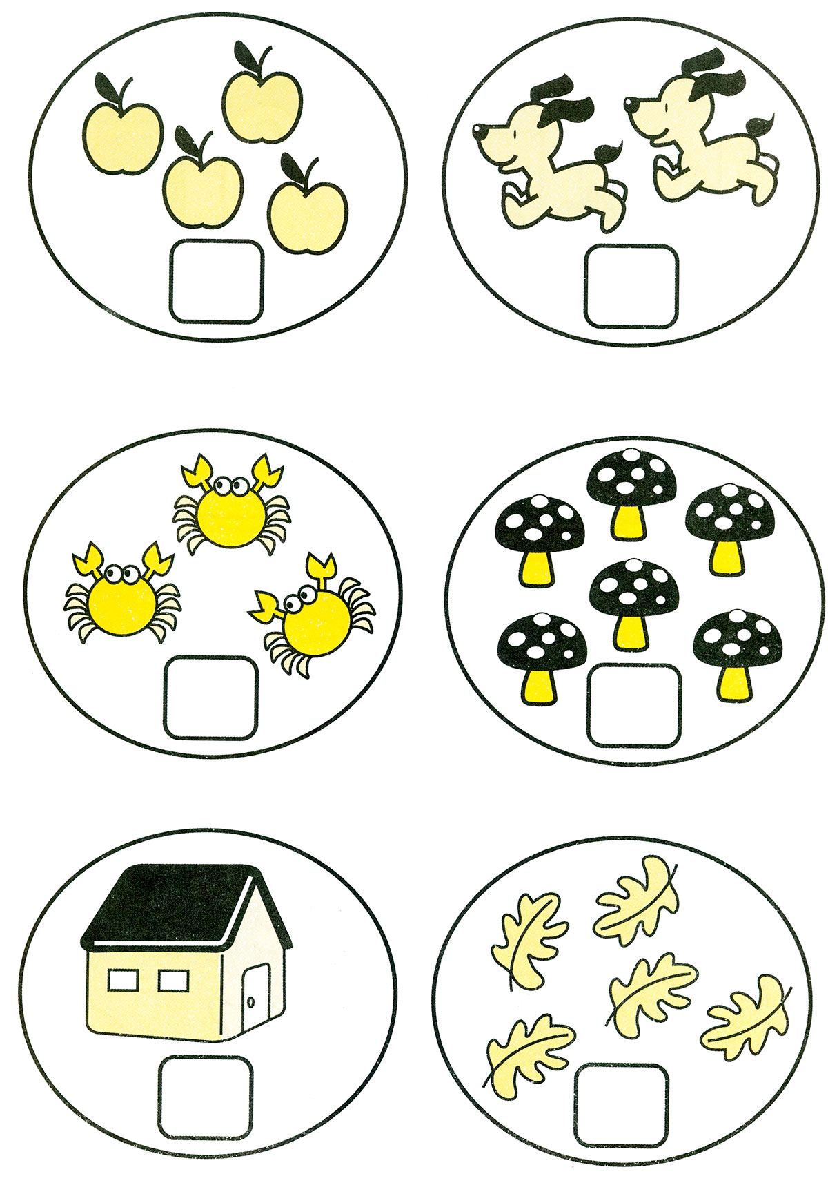Порахуй предмети в овалах і впиши відповідні числа у віконця