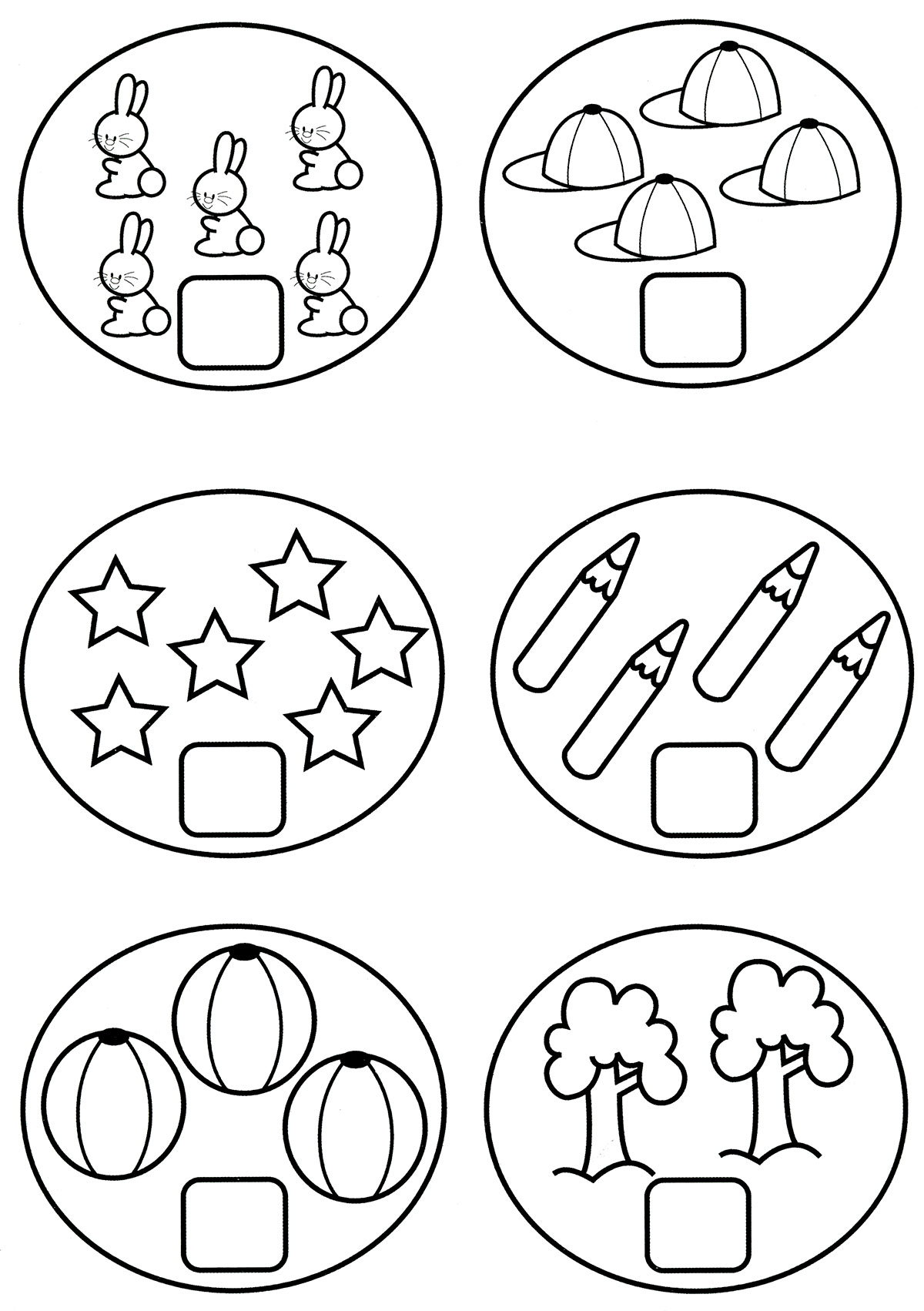 Порахуй предмети в овальчиках і впиши відповідні числа у віконця.