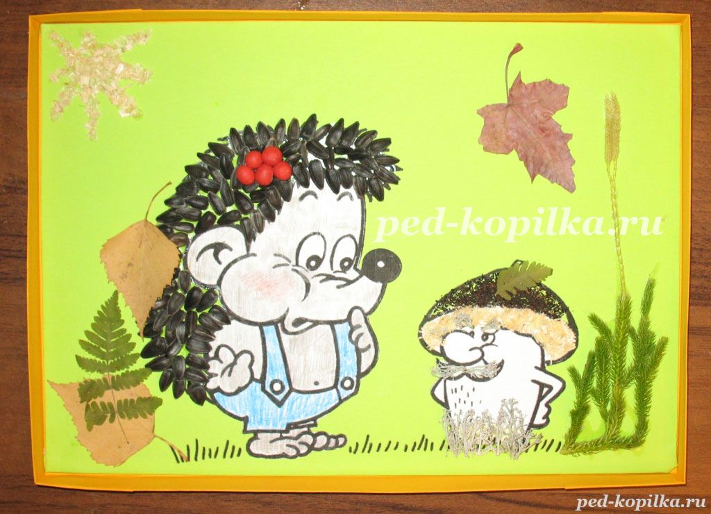 Аплікація з природного матеріалу на тему осінь. Хитрий їжачок