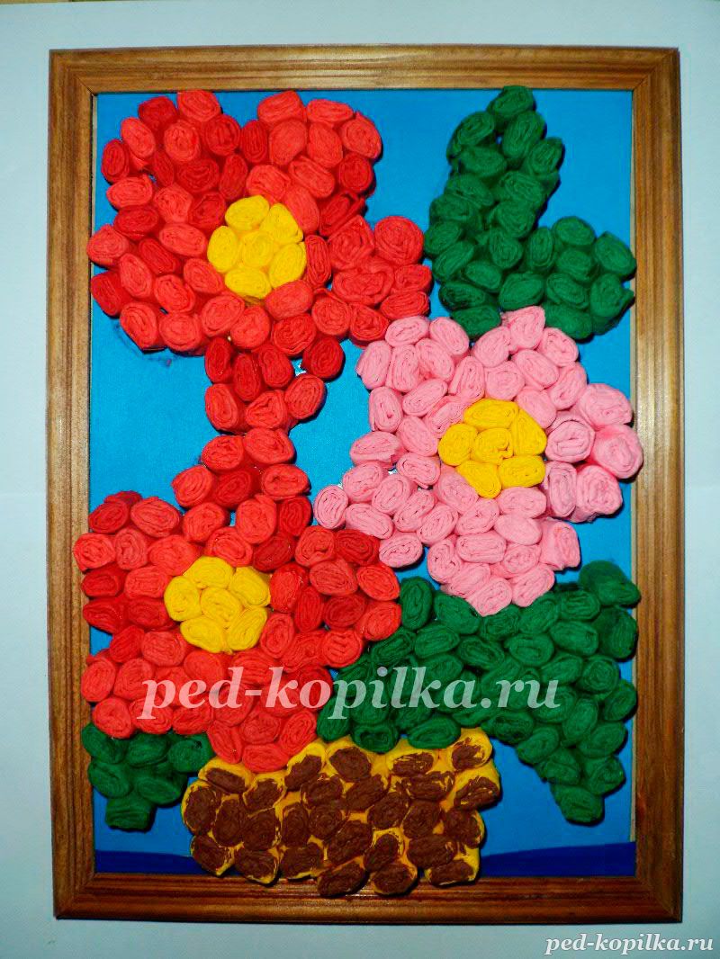 Аплікація Квіти виконана з паперових серветок