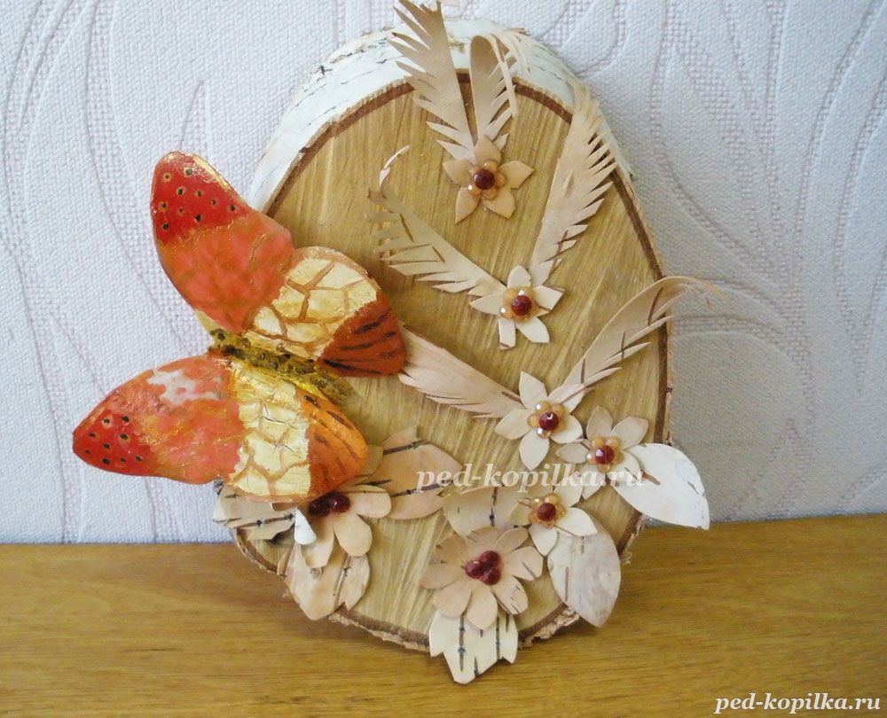 Композиція з берести та пластику на спилі «Метелик в квітах»