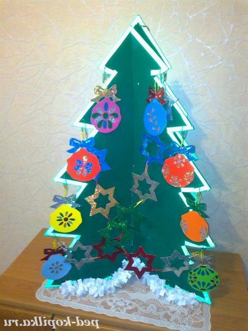 Два силуети ялинки вирізані з цупкого картона.Они обклеєні з двох сторін оракалом зеленого кольору.
