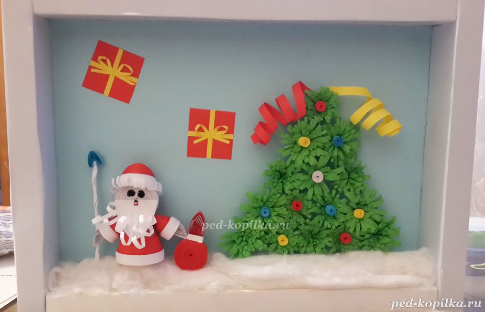 Об'ємна новорічна аплікація в техніці квіллінг