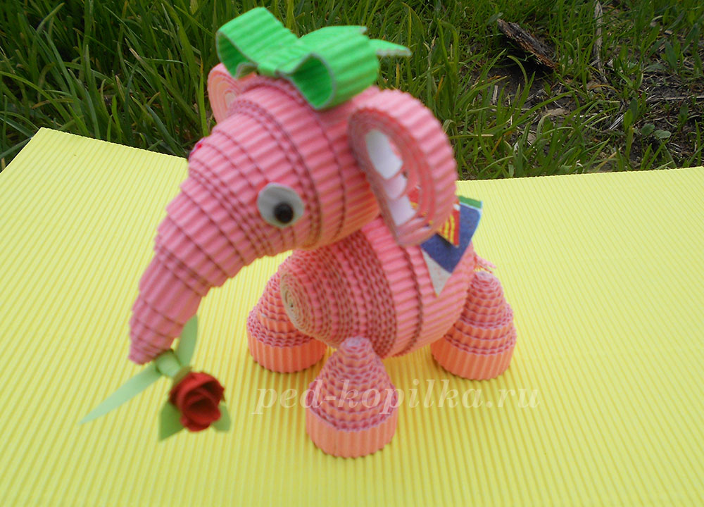 Ця симпатична слониха виконана з гофрокартону в техніці квіллінг