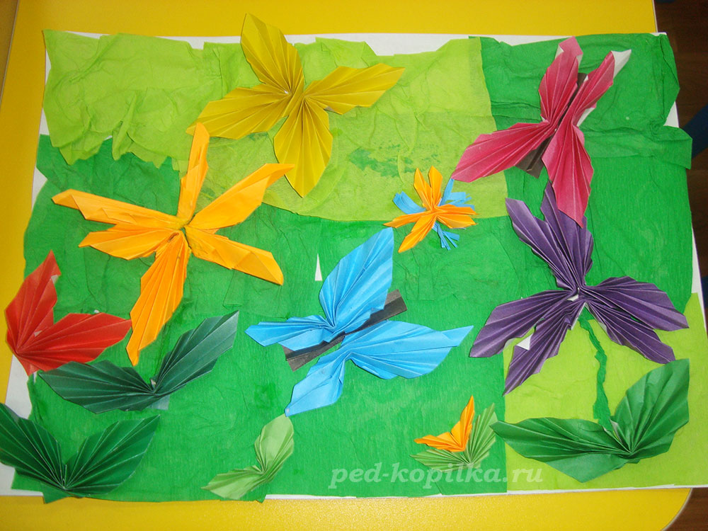 Аплікація "Річна полянка" з гофрованого і кольорового паперу
