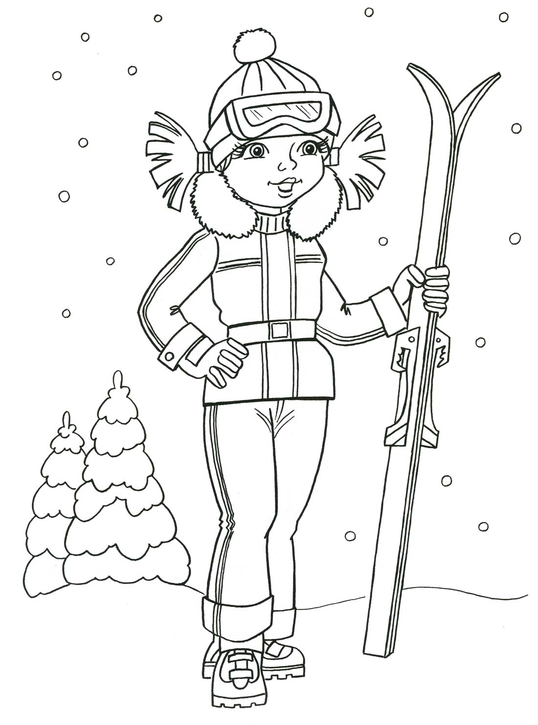 Дівчинка з лижами готова вирушати на гірськолижний трамплін