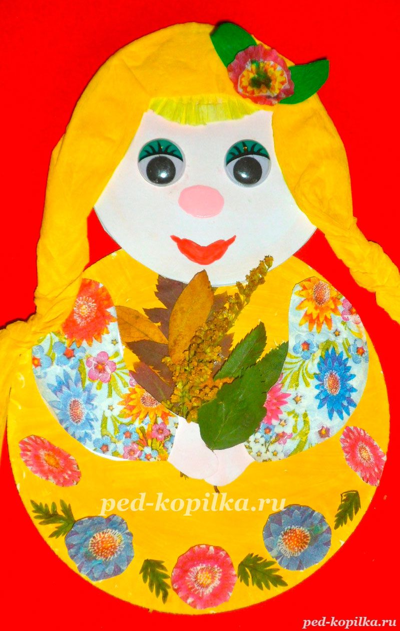 Аплікація "Красуня Осінь" виконана на паперовій тарілочці