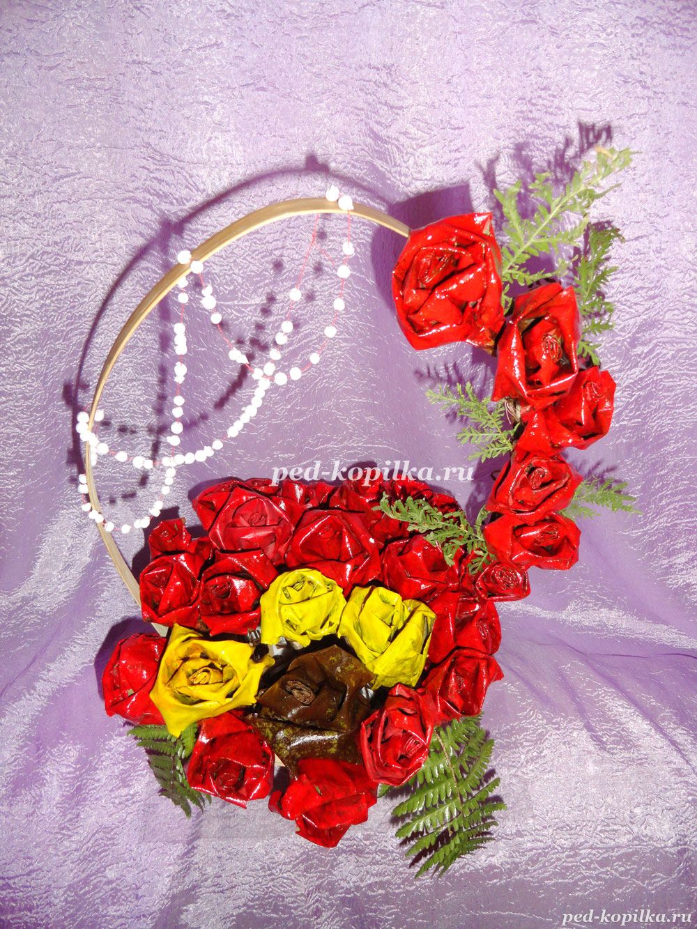Кошик з трояндами з кленового листя