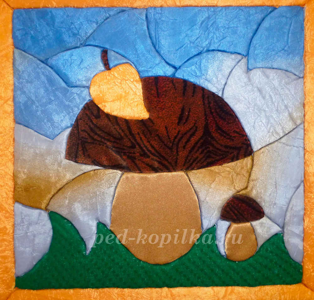Ці гриби виконані з тканини в техніці "інкрустація"