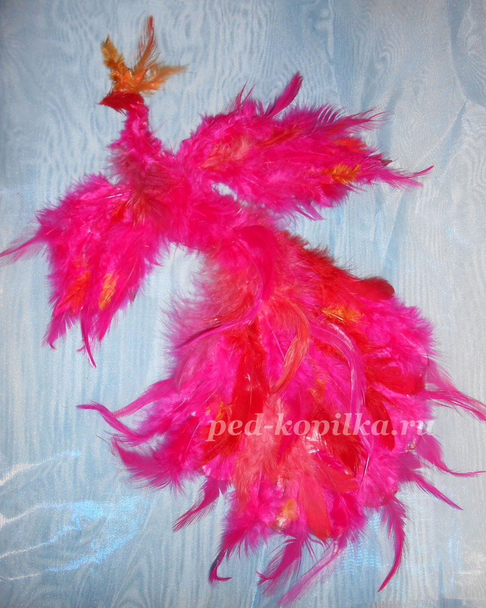 Птах виконана в техніці аплікація з пір'я