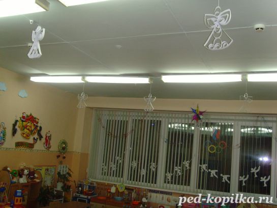 Та таких ангелков я зробила для оформлення групи і підвісила до люстр