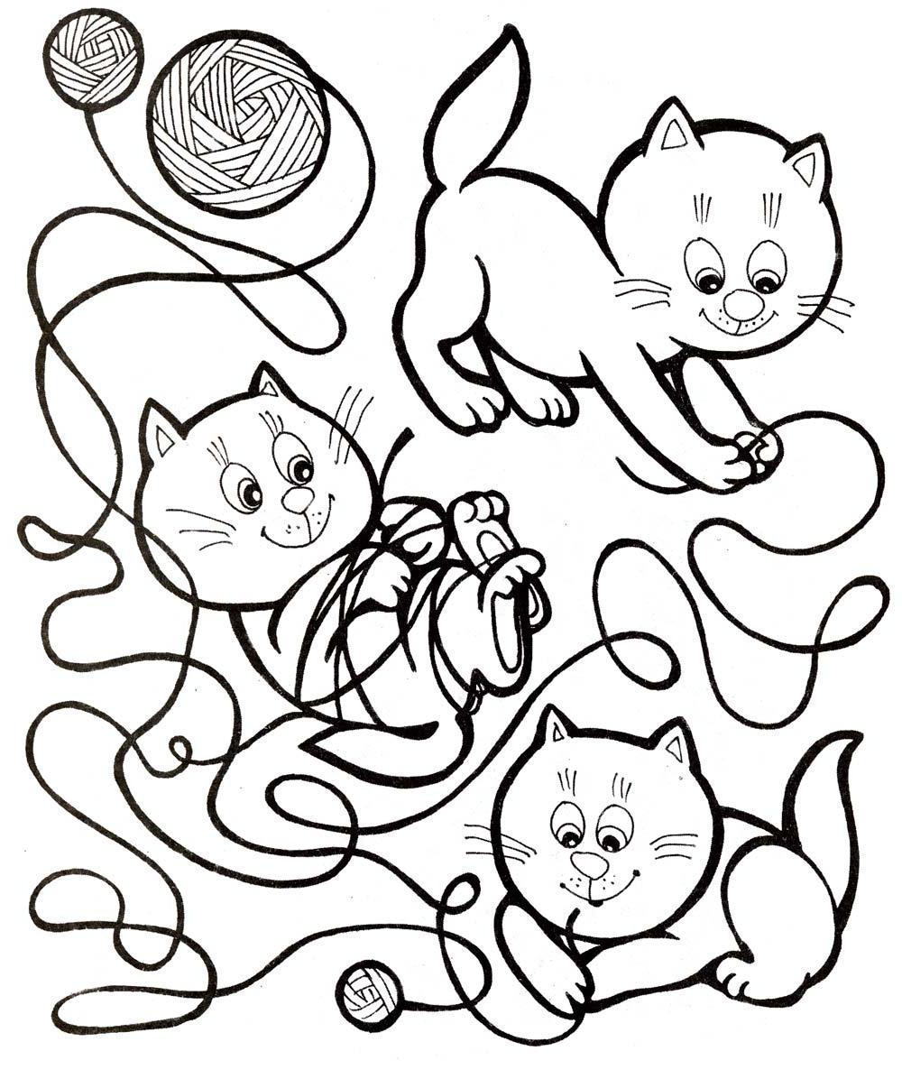 Розфарбуй кошенят, користуючись підказкою: рудий кошеня грає з самим великим клубком, чорний - із середнім, а сірий - з самим маленьким.
