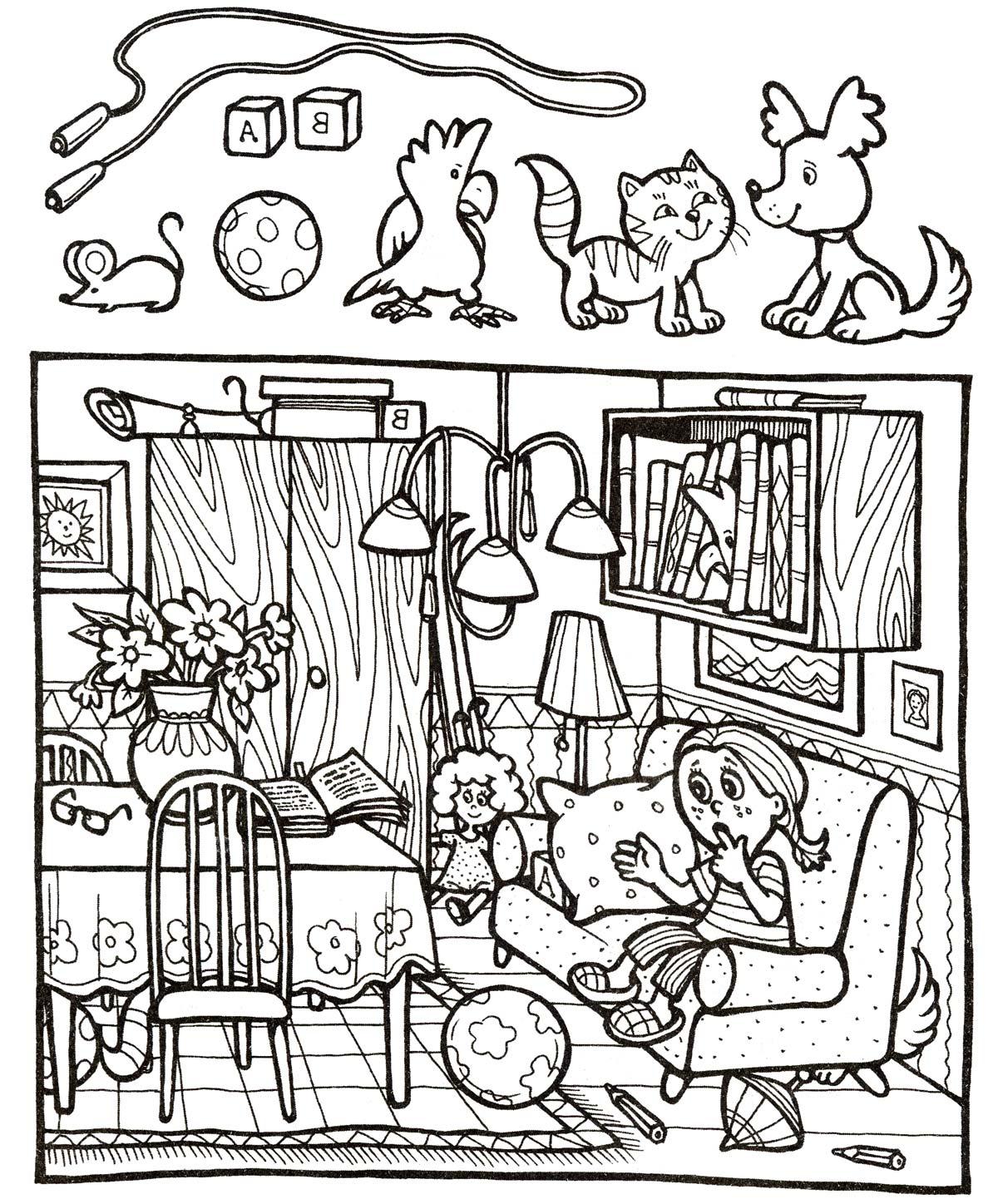 Допоможи дівчинці знайти на картинці зображені предмети.