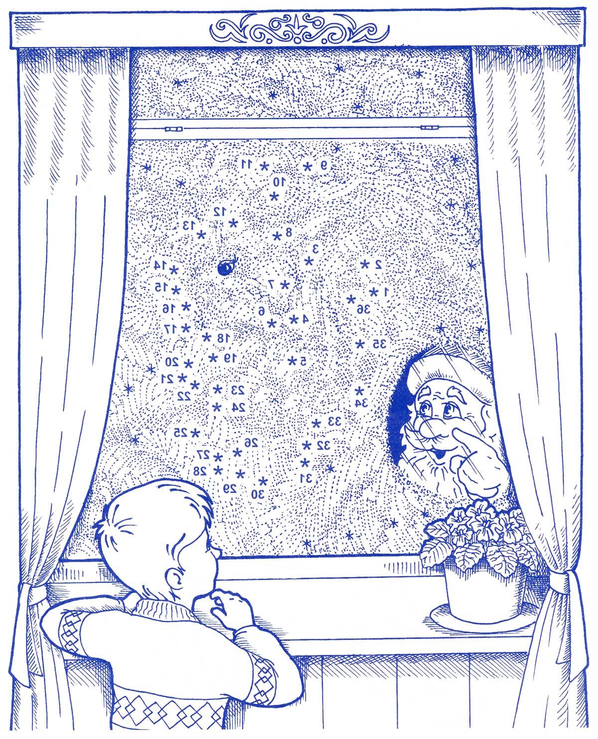З'єднай крапки по порядку, починаючи з 1 і закінчуючи 30 і ти побачиш візерунок на склі