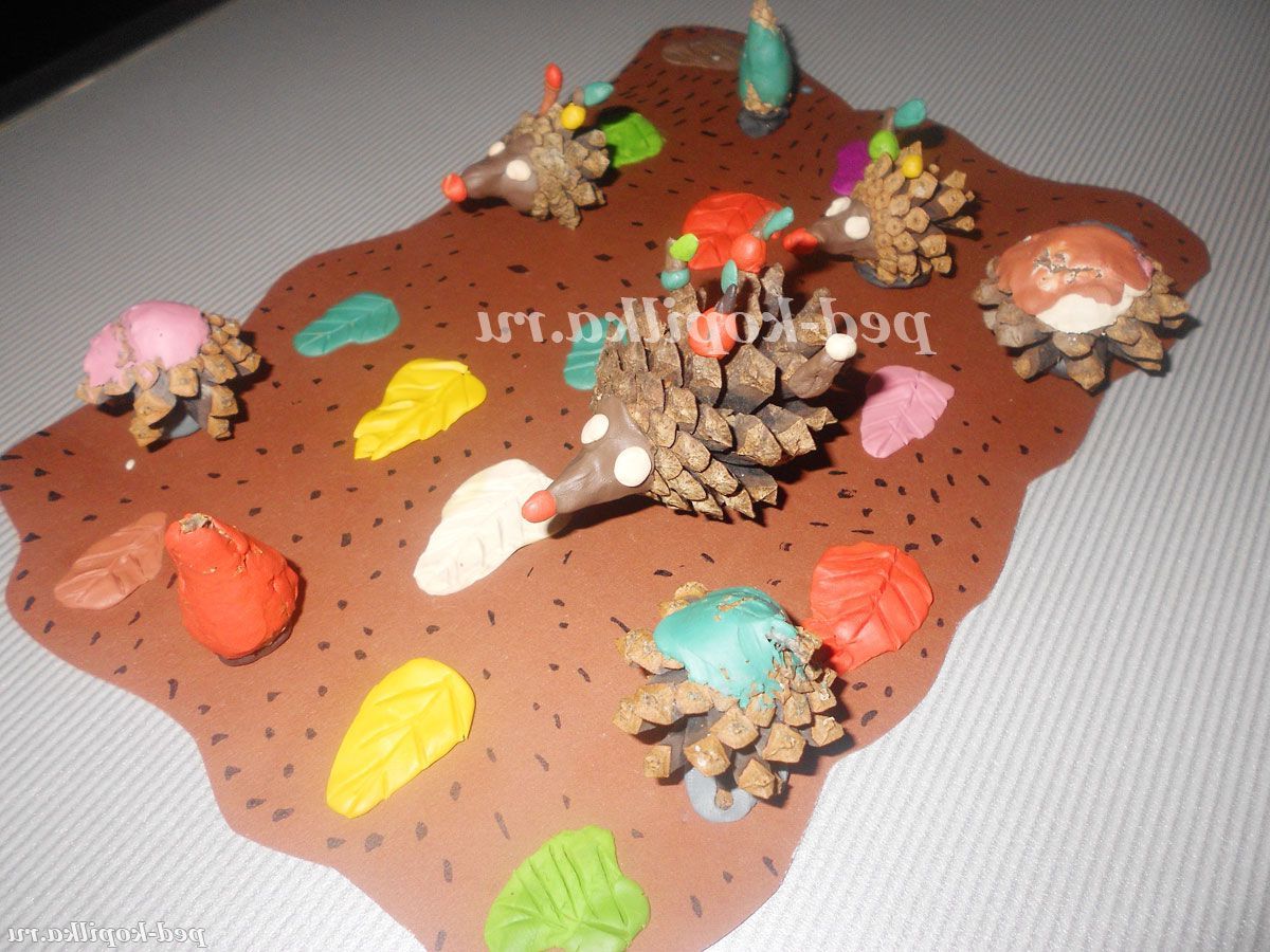 Настільна композиція "Їжачки в осінньому лісі"