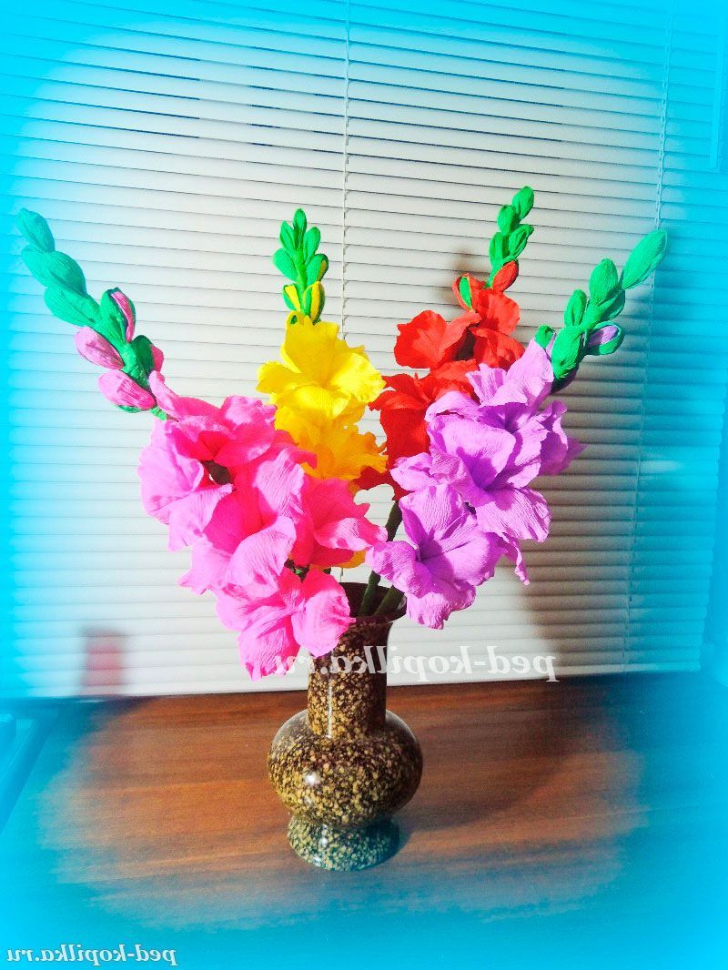 Цей красивий букет гладіолусів виконаний з креповой (гофрованої) папери