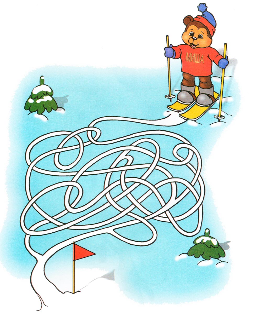 Мишко розгубився в зимовому лісі. Проведи його до прапорця, щоб він не заблукав.