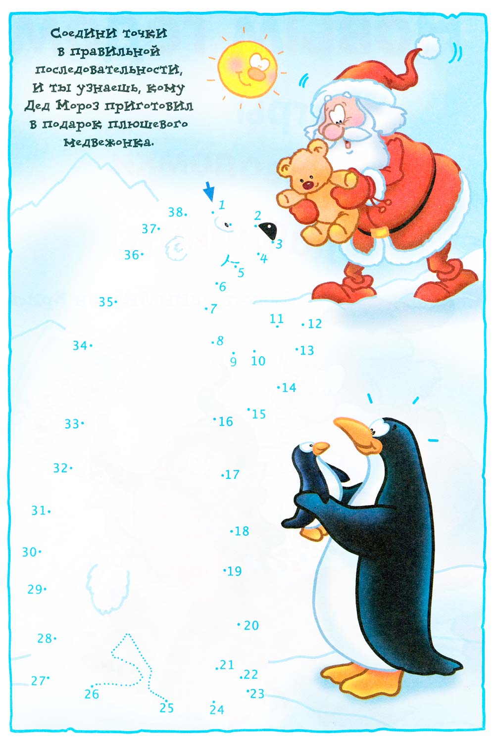 З'єднай крапки по порядку проходження цифр і тоді буде ясно кому дарує ведмедика Санта Клаус