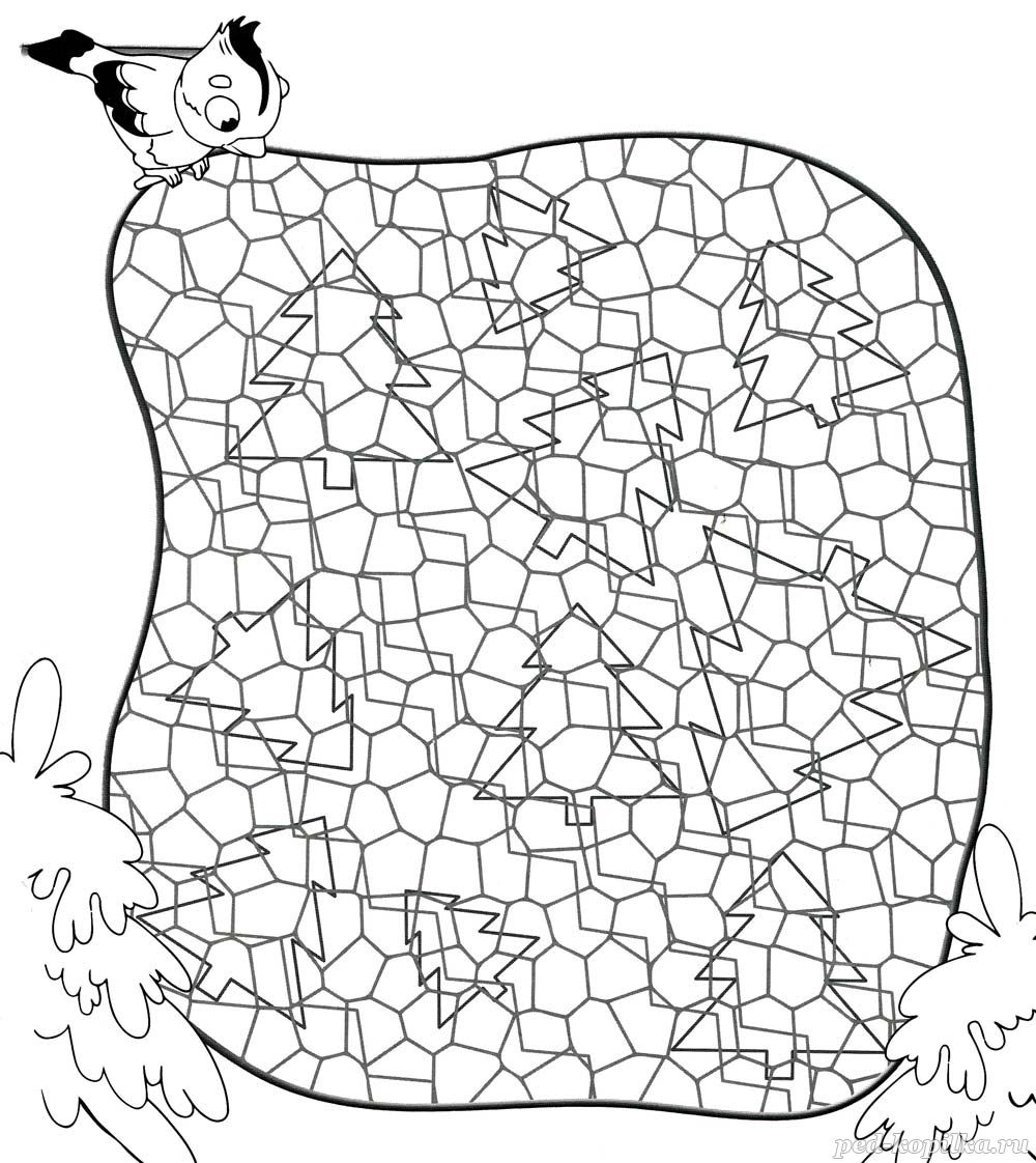 Знайди і розфарбуй десять ялинок