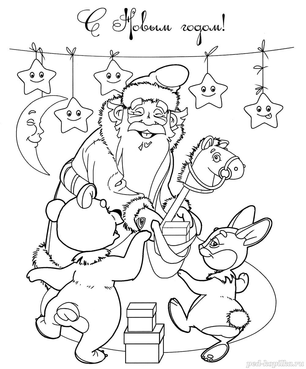 Дідусь Мороз і звірята дуже задоволені і радісні готуються до зустрічі Нового року