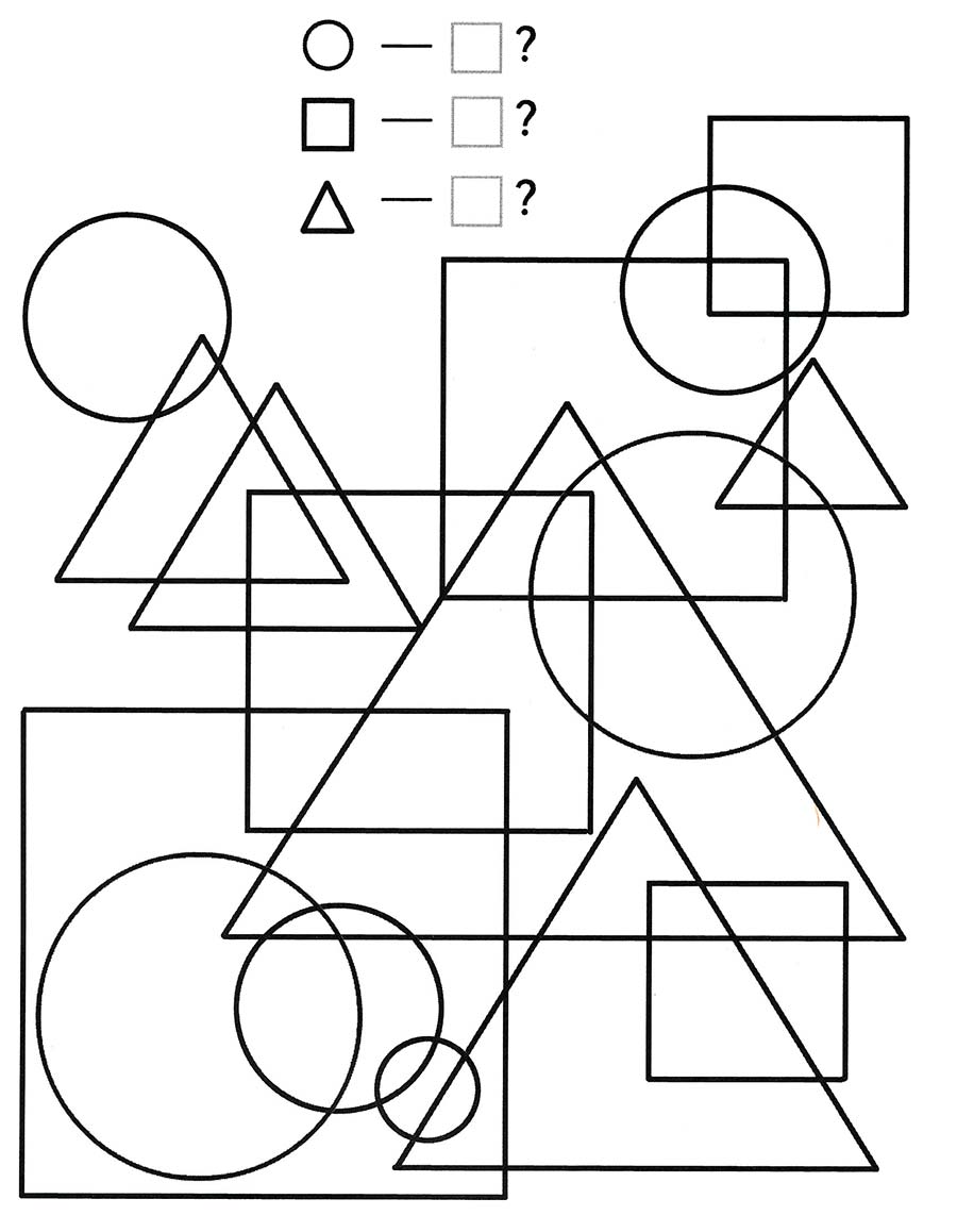 Скільки трикутників, квадратів та кіл зображено на картинці