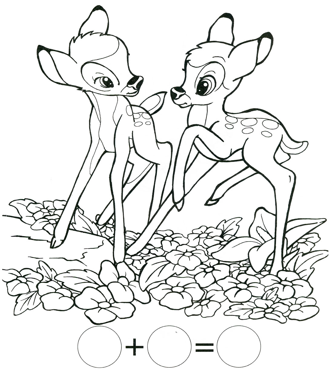 Маленький Бембі познайомився з юною Фалиной. Оленята швидко подружилися і стали грати разом. Порахуй і напиши, скільки оленят грають на галявині.