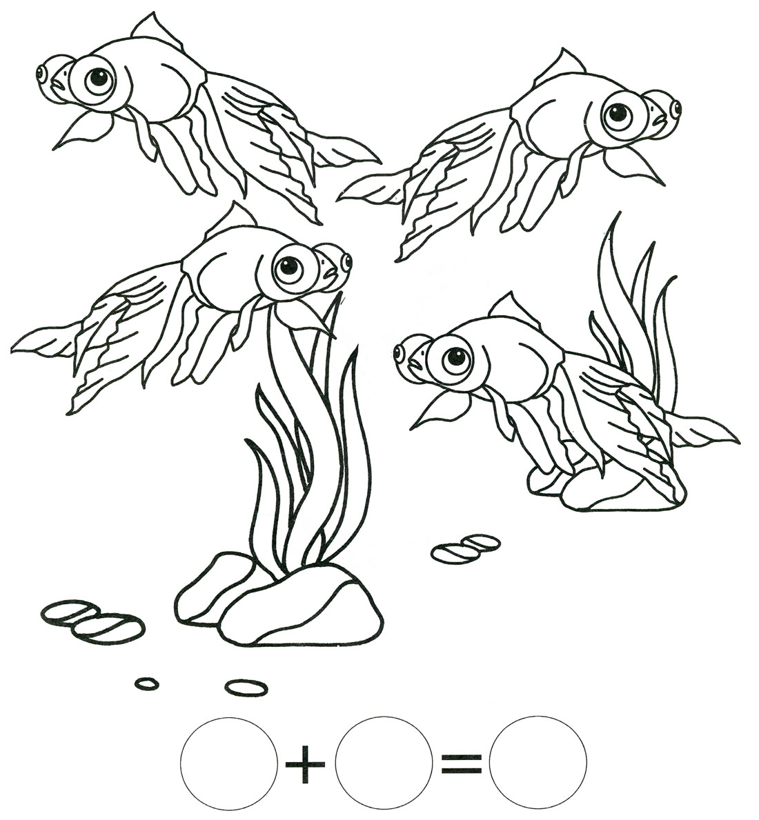 В лісі є невеликий чистий ставок з прозорою водою. Там плавають великі риби. 2 з них золоті, а решта - червоні. Запиши приклад і розв'яжи його. А картинка буде тобі підказкою.