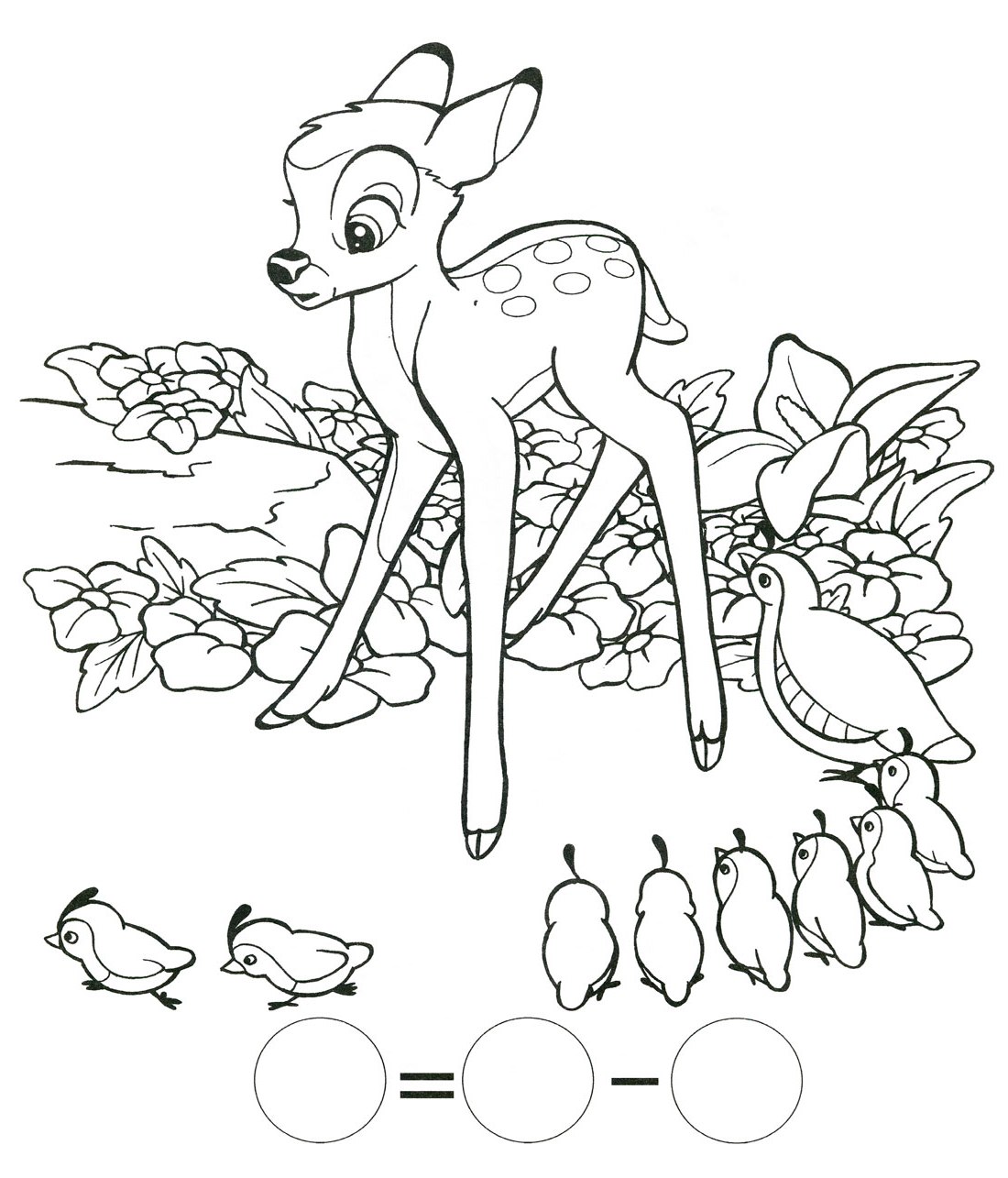 Бембі зустрів на галявині сімейку куріпок. Мама-куріпка вела 8 дітей на прогулянку. Але 2 неслухняних пташеня побігли в інший бік. Бембі тут же придумав приклад. Розв'яжи його.
