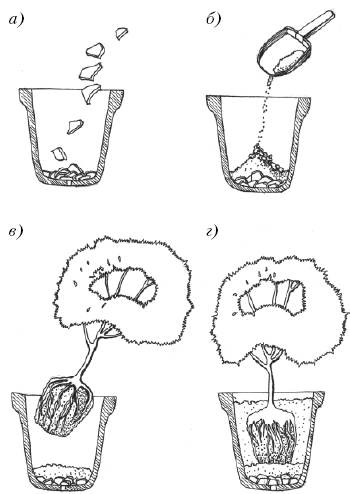 Перед тим як заповнити горщик грунтовою сумішшю, на дно насипають дренажний шар з керамзиту або гальки товщиною 2-5 див.