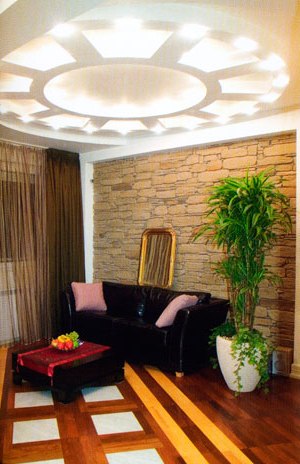 Різнорівневі гіпсокартонні стелі - відмінна ідея для ексклюзивного інтер'єру. По-перше, вони допомагають приховати недоліки стелі: нерівності, тріщини, стики плит перекриттів. По-друге, така стеля дозволяє заховати проводку та інші інженерні комунікації. По-третє, його можна монтувати в будь-якій кімнаті: вітальні, дитячої, навіть у ванній (тут використовують спеціальний вологостійкий гіпсокартон). По-четверте, стеля з гіпсокартону володіє високою звуко - і теплоізоляцією. По-п'яте, він довговічний. Перераховувати достоїнства цього матеріалу можна ще довго. Єдиний серйозний недолік у тому, що така стеля «з'їдає» частину висоти кімнати.