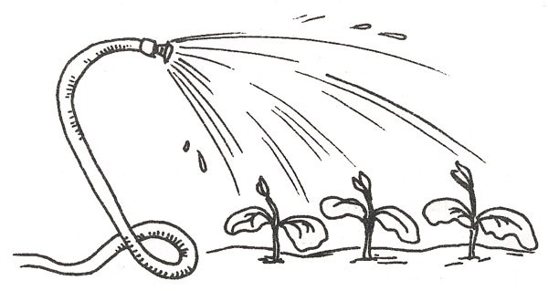 Ще один поширений прийом - дощування, суть його в тому, що від кількості вологи в ґрунті залежить і її здатність акумулювати тепло. Вдень сонце нагріває вологу землю, а вночі вона віддає тепло, внаслідок чого близько рослин утворюється певний мікроклімат. Цей спосіб застосуємо до того, як прийдуть заморозки. По завершенні тривалих заморозків рекомендуються додаткові нічні поливи, а підбадьорити підморожені саджанці можна з допомогою обприскування вихованців після сходу сонця (рис. 2).