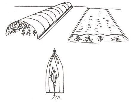 Своїми руками можна зробити всякі укриття, благо їх конструкція елементарна. Можна підготувати квадратний відрізок поліетилену зі стороною 40 см, згорнути в кульок, що фіксується збоку дерев'яним прутком, розщепити його і перев'язати ниткою по напрямку від широкого до вузького горла, а в нижній частині кулька відступити приблизно 10 см від гострого кінця прутика. При переховуванні рослини цим кінцем прут встромляють в грунт.