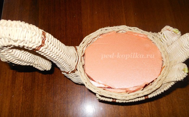 На дно качечки вирізаємо овал з пеноплена і вставляємо