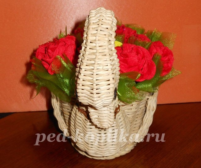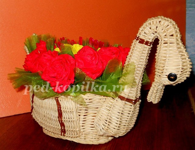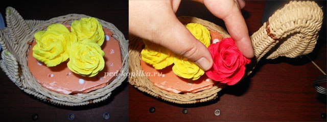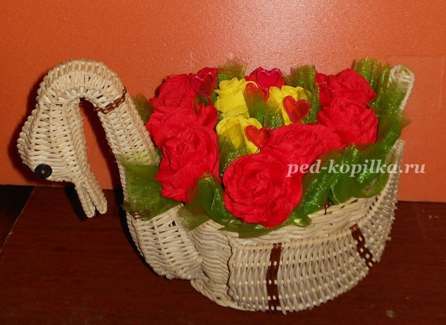 Всі ми знаємо, що качечка є символом щасливої родини, тому я пропоную вашій увазі як зробити оригінальний подарунок. Для початку нам треба заповнити нашу качечку трояндами