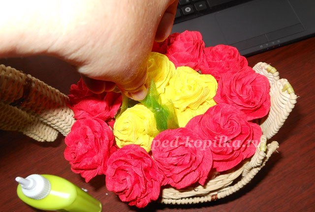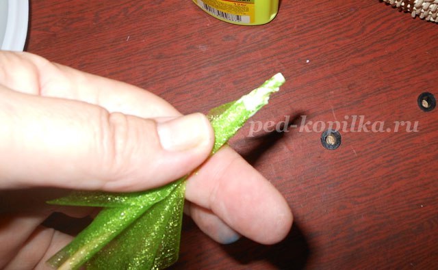 Вставили, робимо дірочки куди будемо вставляти трояндочки і заливаємо дірочки клеєм