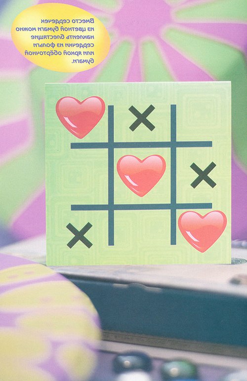2. Наклейте на основну деталь всі дрібні деталі: хрестики, сердечка і палички. Місця, на які їх потрібно приклеювати, позначені на основній деталі тонкої лінією. Постарайтеся зробити все максимально рівно і чисто.