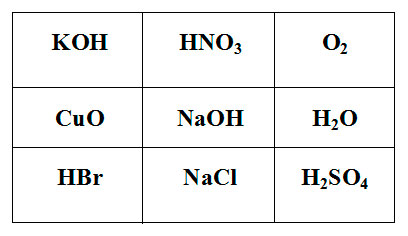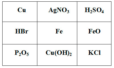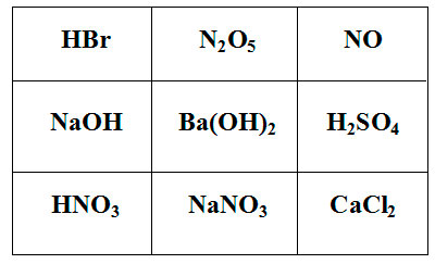 Обладнання: комп'ютер, мультимедійний проектор, таблиця для заповнення, картки для учнів чотирьох груп, періодична таблиця хімічних елементів Д.і.менделєєва, таблиця розчинності.