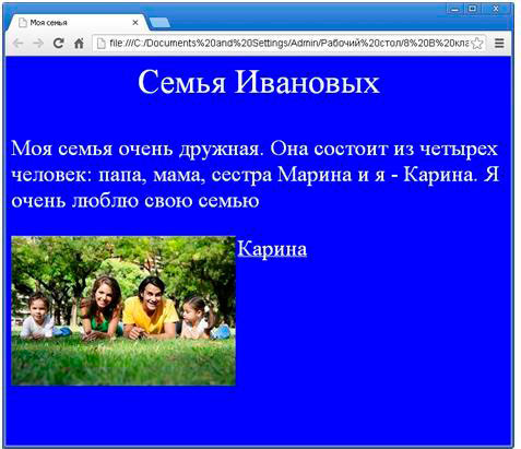 Створити html - сторінку про свою сім'ю. Вставити зображення і гіперпосилання. Наприклад,