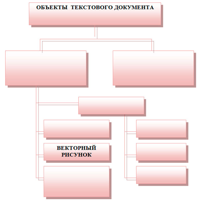 Обом командам видається відповідний роздатковий матеріал - схема-классиффикация по темі «Об'єкти текстового документа».