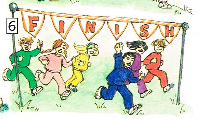 "Good children," says Mother Fox. "Now do exercises." They all do their exercises.