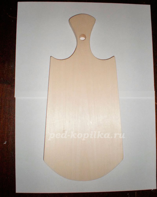 4. Переводимо малюнок на поверхню дошки. Із зворотного боку кальки обводимо контур м'яким олівцем. Кладемо цією стороною на поверхню дошки і обводимо з лицьової сторони кальки контур малюнка. Таким чином, графіт від м'якого олівця віддрукується на поверхні дошки.