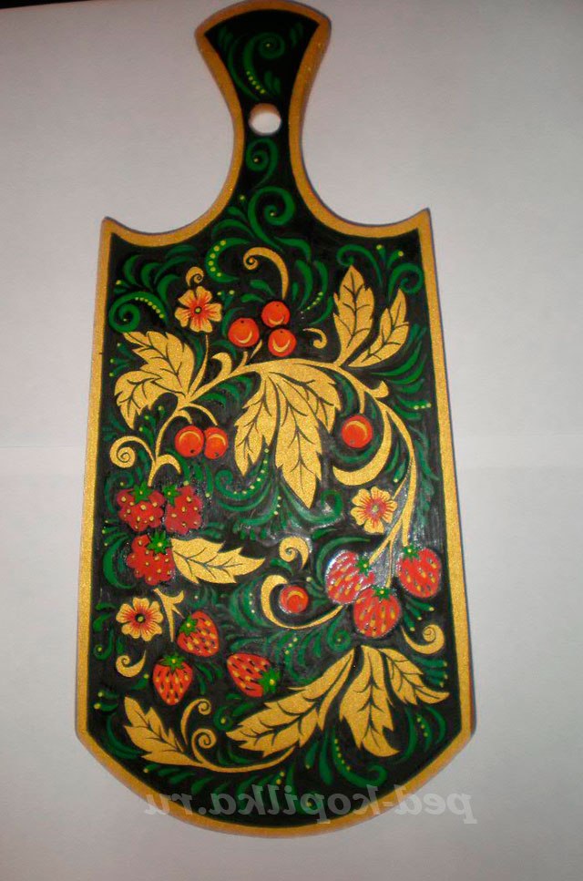 Вірно, восени золотом горять листя беріз і кленів, дорогоцінними рубінами червоніють спілі ягоди калини, горобини. Такий же ошатною, барвистою була дерев'яна посуд, якій здавна торгували на веселих ярмарках у старовинному селі Хохлома. Ніби це не звичайні дерев'яні миски та ложки, а золоті! Такий посуд і на царський стіл поставити не соромно. Намальовані на ній трави, листя, квіти, казкові птахи. Але не для царських столів створили майстри посуд з хохломской розписом, прикрашала вона селянські свята та весілля. Хочете і ви свій будинок прикрасити «золотим» виробом?