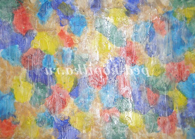 1. Заповнюємо аркуш картону різнокольоровими мазками. Чим яскравіше вони будуть, тим краще.