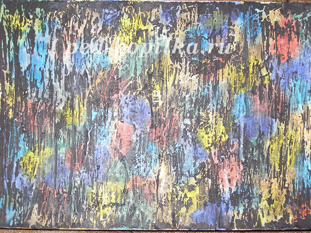 4. Останній етап роботи - зубочисткою процарапываем до здався строкатого шару, створюючи ефект північного сяйва.