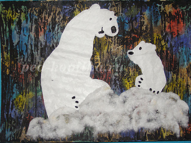 Можна сніг зробити з ватяних дисків, а ведмедиків - з прокладочной папери з цукеркової коробки.