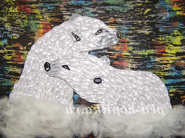 А тут у нас ведмедики виконані в техніці «Квілінг». Зверніть увагу, то в першій роботі ми дряпали по вертикалі, а по другий по горизонталі.