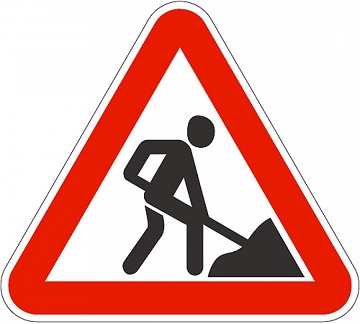 На знак «Дорожні роботи» зображений чоловічок з лопатою в руках. Цей знак попереджає водіїв про те, що попереду ведуться будівельні або ремонтні роботи на проїжджій частині, тротуарі або узбіччі; отже, тут можуть бути викопані ями, купи піску, різні механізми і машини. Все це може бути дуже небезпечним і для водіїв, і для пішоходів. Особливо в темний час доби. Адже місця проведення таких робіт не завжди обгороджені і освітлені.