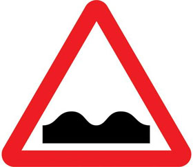 Наступні три знаки попереджають водіїв про небезпеки, які можуть чекати їх на не дуже хороших дорогах. Кожен з цих знаків ставлять перед небезпечною ділянкою дороги.