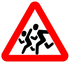А цей знак називається «Діти». Швидше за все, ти багато разів бачив його. Він встановлюється біля шкіл, дитячих садів, заміських таборів відпочинку, тобто в тих місцях, де на дорогу можуть раптово вийти або вибігти діти. Звичайно, дітей на дорозі бути не повинно! Але вони можуть з'явитися, і водій повинен бути про це попереджений. Ось і ставлять на дорогах цей знак. Іноді школярі вважають, що цей знак, як і знак «Пішохідний перехід», дозволяє переходити дорогу в цьому місці. Адже на ньому зображені діти, що біжать через дорогу! Ні, цей знак також призначений для водіїв. Тож пам'ятай: цей знак зовсім не дозволяє переходити дорогу в тому місці, де він встановлений.