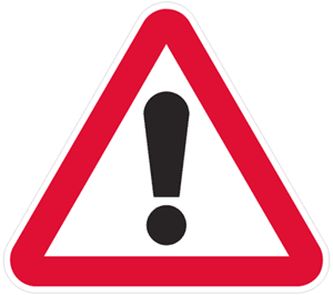 Попереджувальні знаки мають трикутну форму, білий фон і червону окантовку.